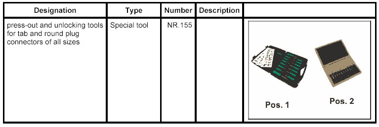 1. Open the secondary locking mechanism using the press-out and unlocking tools for tab and round plug connectors of all sizes NR.155. Insert the tool in the opening provided and lift the locking mechanism. The locking mechanism engages in the upper position.