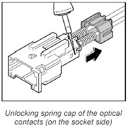 When exchanging the LWL, the optical contacts from the plug connection must be removed.