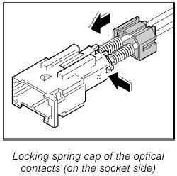The LWL is delivered with affixed plastic contacts. These contacts are latched in the connector housing in the case of repairs. Grey and black contacts with identical mechanical dimensions are used.