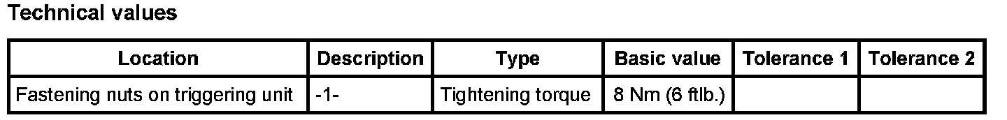 1. Position triggering unit, move both ground straps -2- on the left fastening bolts and screw down with the three fastening nuts -1-. Tightening torque: 8 Nm (6 ftlb.)