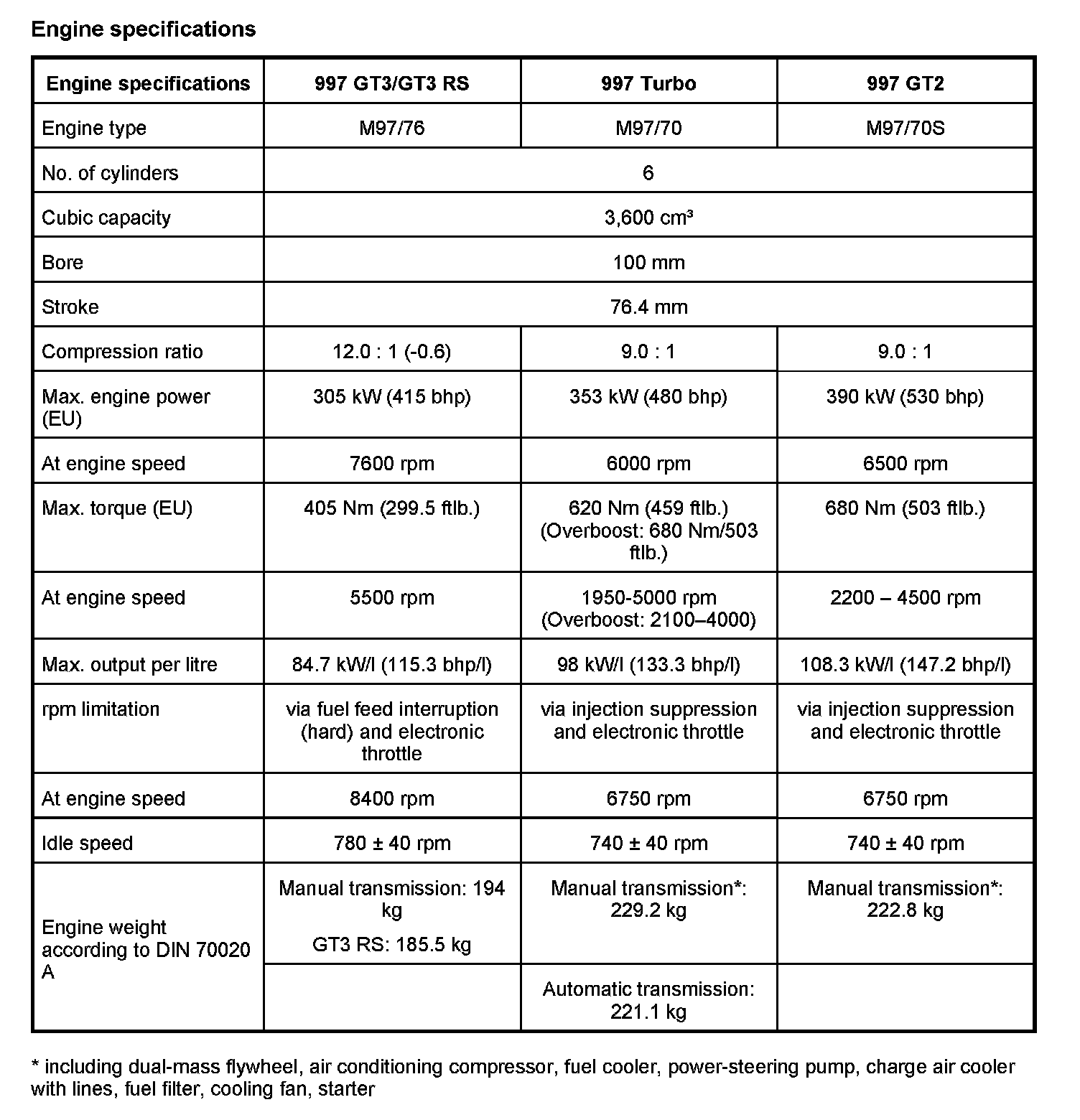Technical data for the M97/76, M97/70 and M97/70S engine