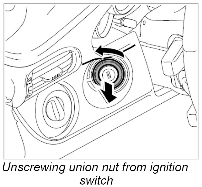 2. Turn union nut using a narrow plastic spatula, for example, or using the special wrench T10152 tool and unscrew the ring from the ignition switch.