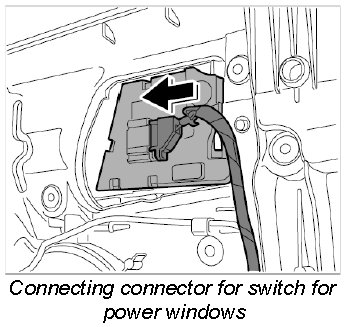 1. Insert the switch for power windows into the mounting points at the door trim panel using the locking tabs.