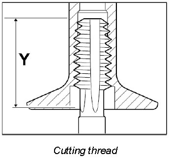 - While pressing in the base thread, a noticeably larger amount of force is required on the screw-in tool to form the internal thread. Pressing is finished when the screw-in tool can be turned further more easily.