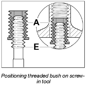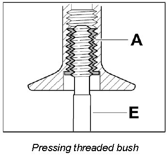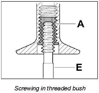 Screw threaded bush A in fully (note bush length classification) using the screw-in tool E.