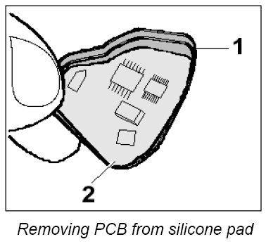 2. Insert PCB -2- into the new silicone pad -1-.