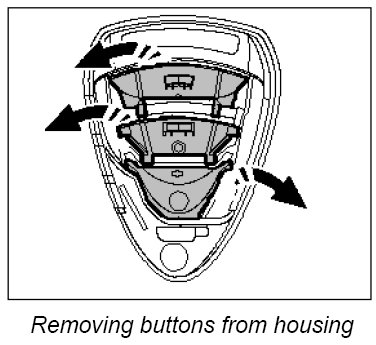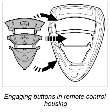 1. Engage new buttons in the remote control housing.