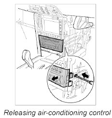 1. Using a screwdriver, press the side holder to the left and right and pull out the air conditioning control from the installation slot.