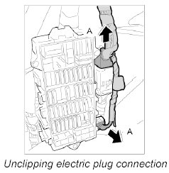 1. Unclip electric plug connection at the fuse box and move it aside.