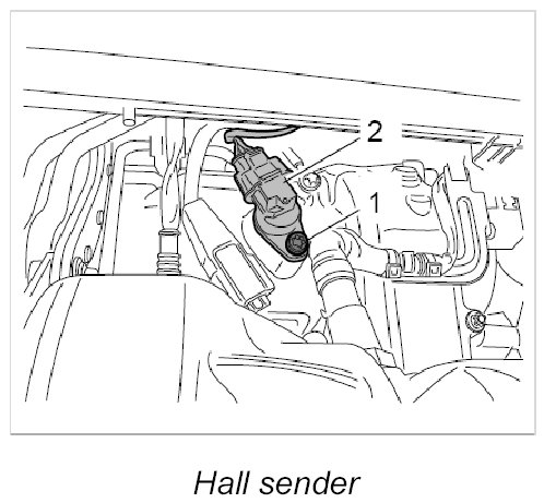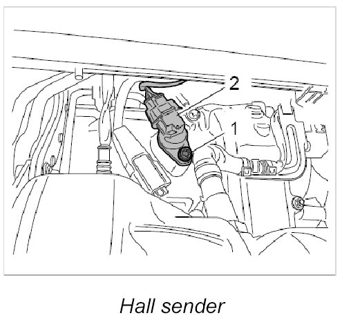 4. Connect cable plugs to the hall sender and lock them. The cable plugs must engage audibly. Pull on the plugs to check that they are seated securely.