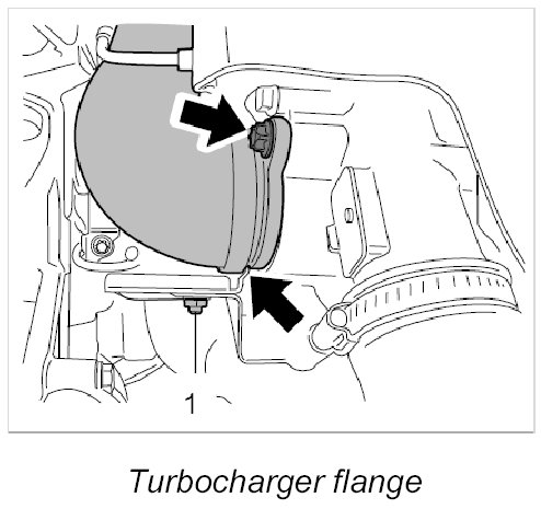 2. Unscrew two Torx screws (M6 x 20) -Arrows- on the turbocharger.