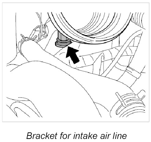 16. Insert intake air lines into the flanges on the turbocharger.