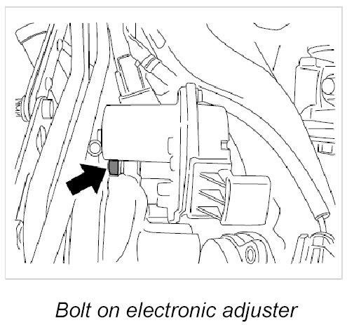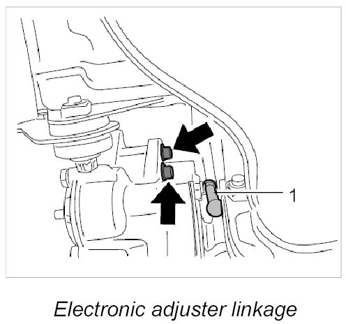 10. Unscrew hexagon socket head bolt (M6 x 25) -Arrow- on the right electronic adjuster using a long socket-wrench insert (a/f 5) with a ball head.