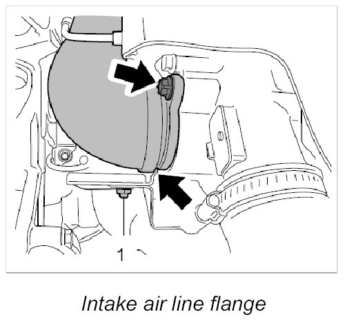 4. Press intake air lines out of the brackets -Arrow- in the engine compartment.