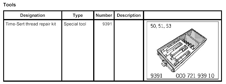 - Thread repairs must only be performed using the Time-Sert thread repair kit