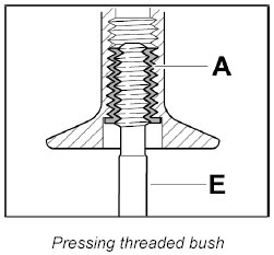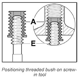 Screw threaded bush A in fully (note bush length classification) using the screw-in tool E.