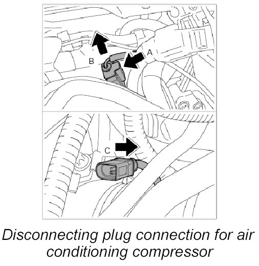 4. Disconnect plug connection for air conditioning compressor.