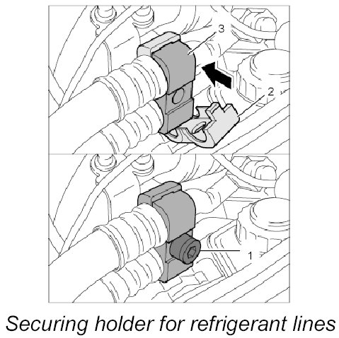 3.3. Connect air conditioning lines and secure with the fastening screws -1- .