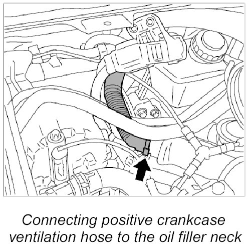7. Connect positive crankcase ventilation hose to the oil filler neck.
