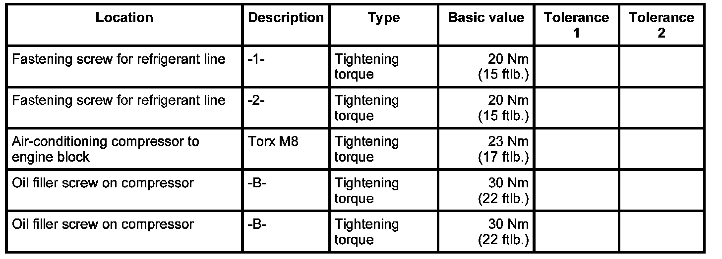 8. Screw in front Torx screws for air-conditioning compressor (M8 x 90) -1- and -2-.