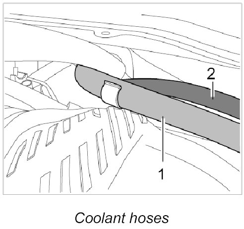 6. Unclip refrigerant hoses -1- and -2- between body and intake-air distributor.
