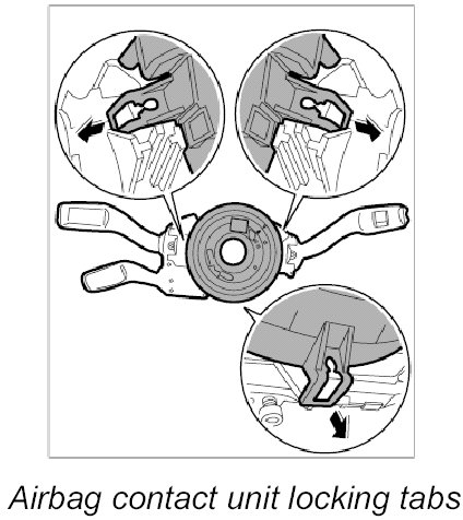 - To position the airbag contact unit in the central position, press the locking element and turn the rotor carefully to the left as far as it will go.