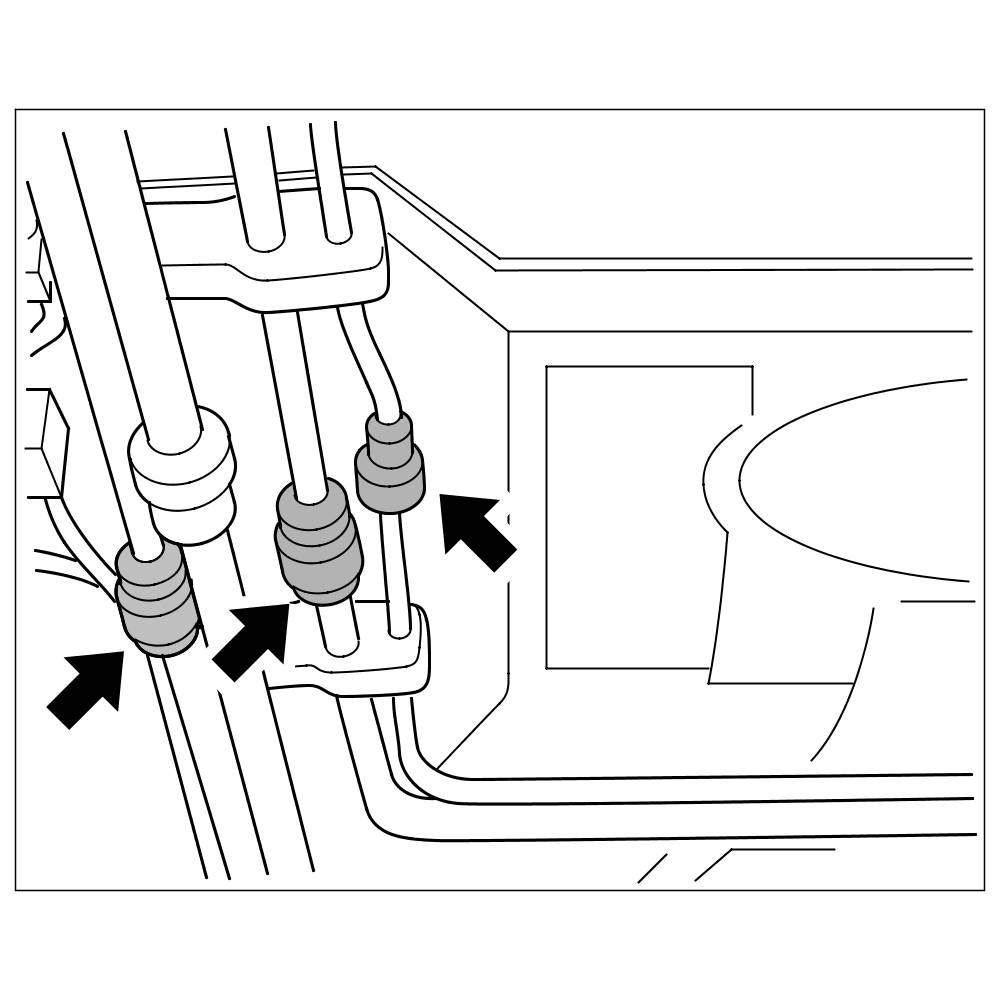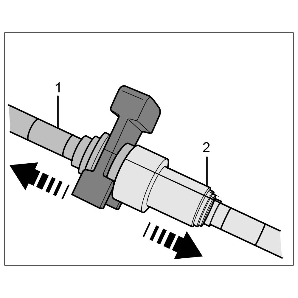 1.2. Once you have released the plug-in coupling (by inserting the loosening tool), pull the lines apart -arrows-.