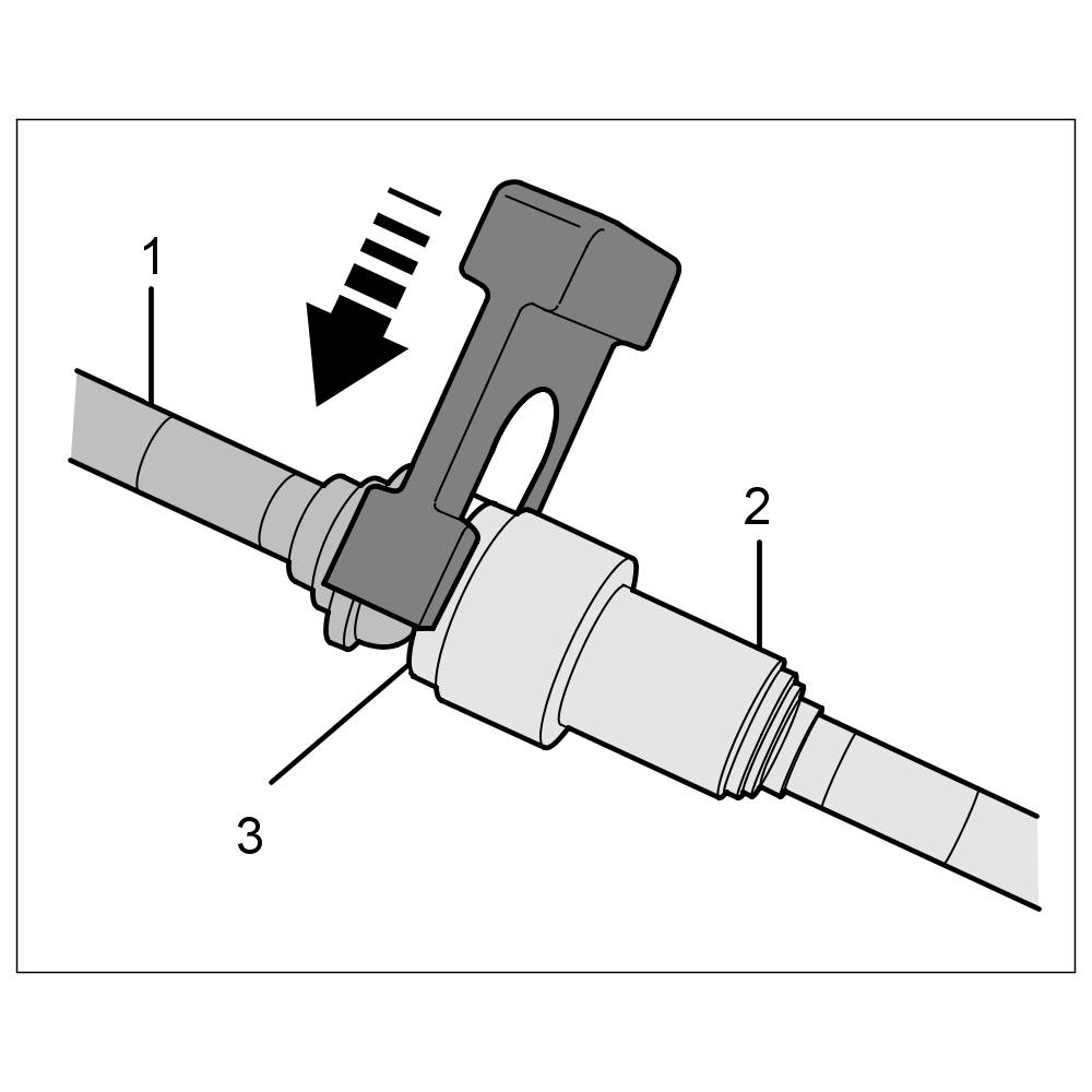- Only use loosening tool 9780 for opening (releasing) the plug-in couplings! If a different (commercially available) loosening tool is used, the plug-in connection can become damaged if it is not handled properly, e.g. as a result of incorrect positioning or levering.