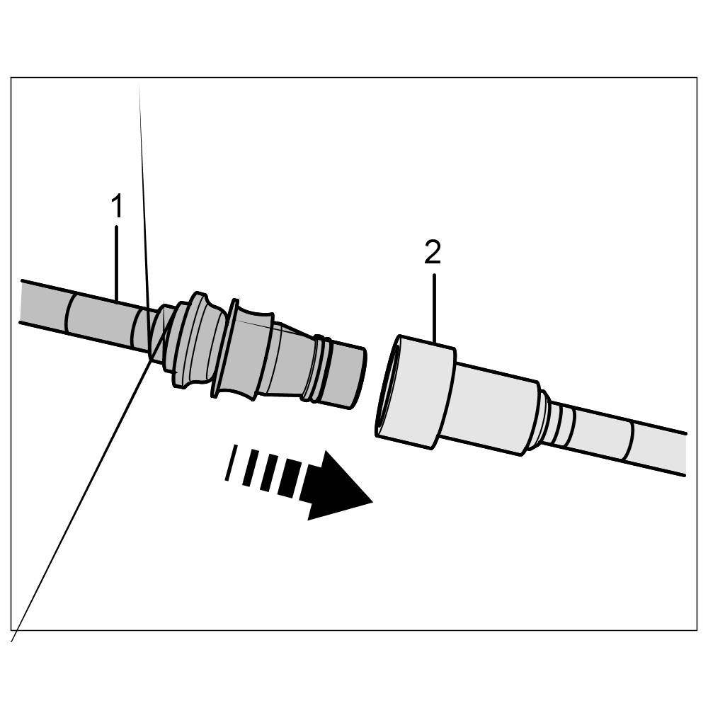 If the plug-in coupling is locked correctly, you should be able to feel slight axial play between the connector -1- and plug-in sleeve -2-. A plug-in coupling cannot be partly locked.