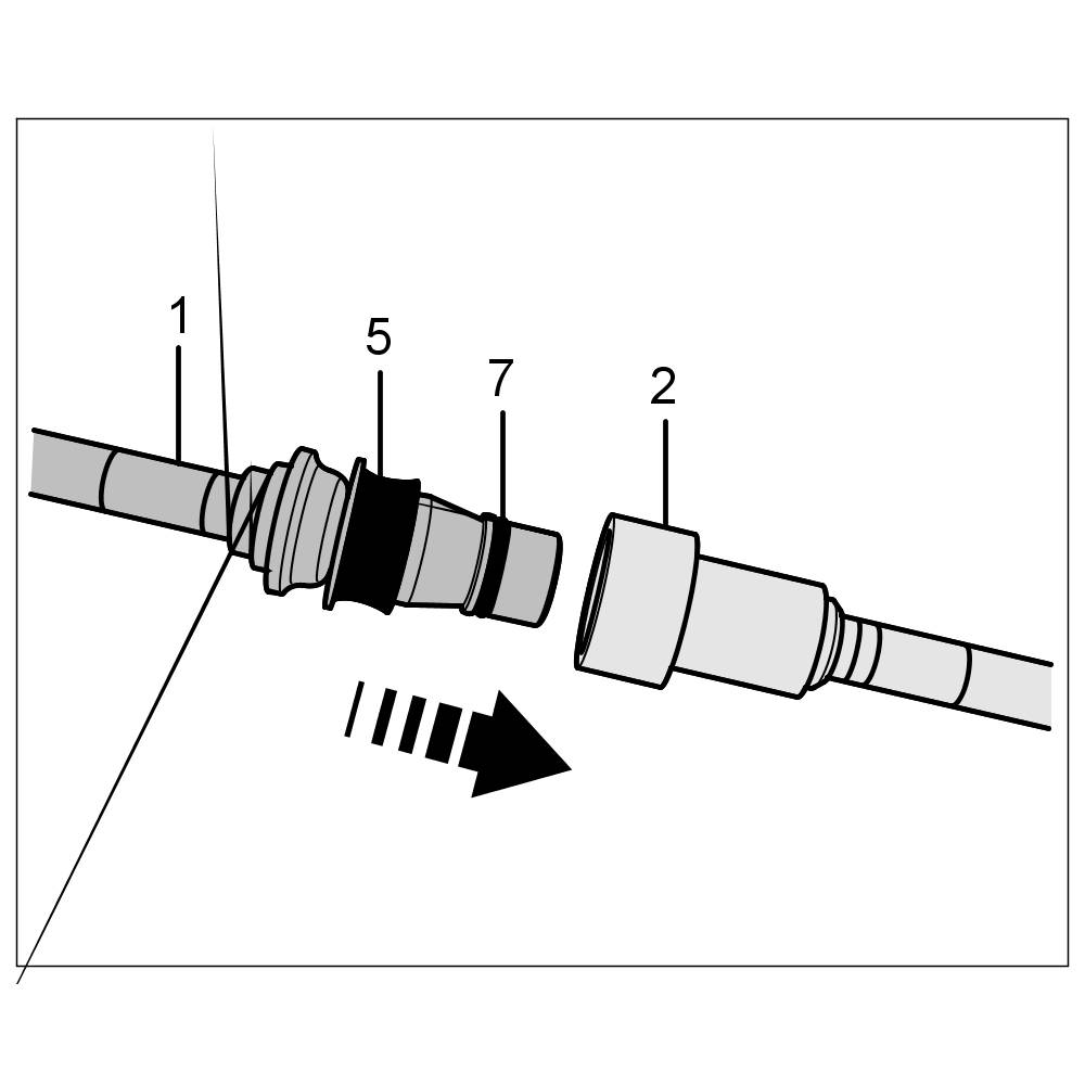 2.1. Replace the O-ring -7- and axial spring -5- if necessary. Then connect the lines (plug-in coupling) -1 and 2- ( -(arrow)- ).
