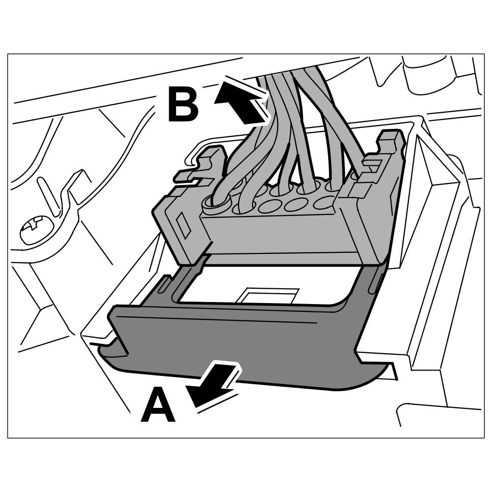 3.2. Pull off connector on headlight -arrow B-.