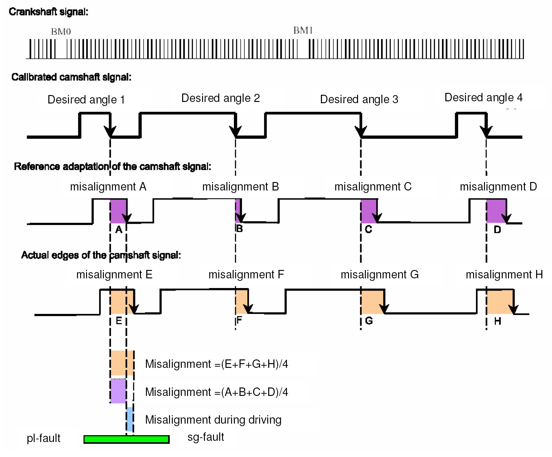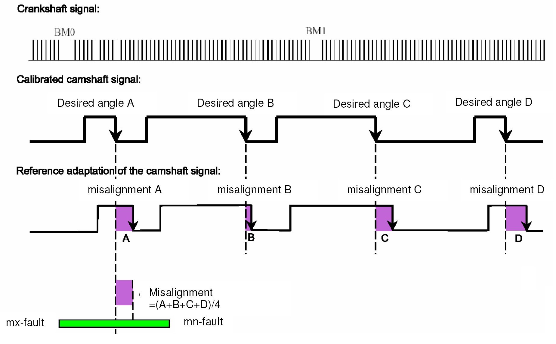- Angle of misalignment are stored in EEPROM over whole engine life, angle limitation ±5 degrees crank angle. Misalignment over ±5 degrees crank angle will be added to the adaptation correction in part 2.