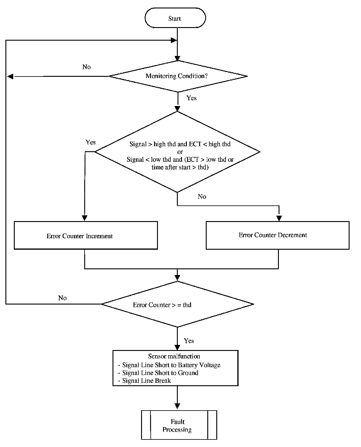 The diagnosis basically involves the comparison of the oil temperature sensor-signal to a plausible temperature range based on ECT sensor signal.