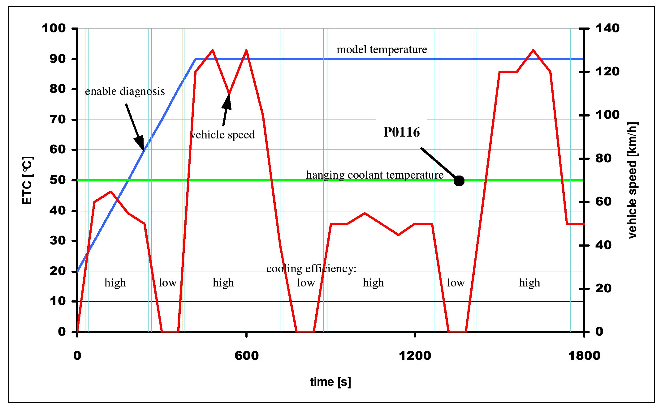Diagnosis threshold min. < engine coolant temperature < Diagnosis threshold max.