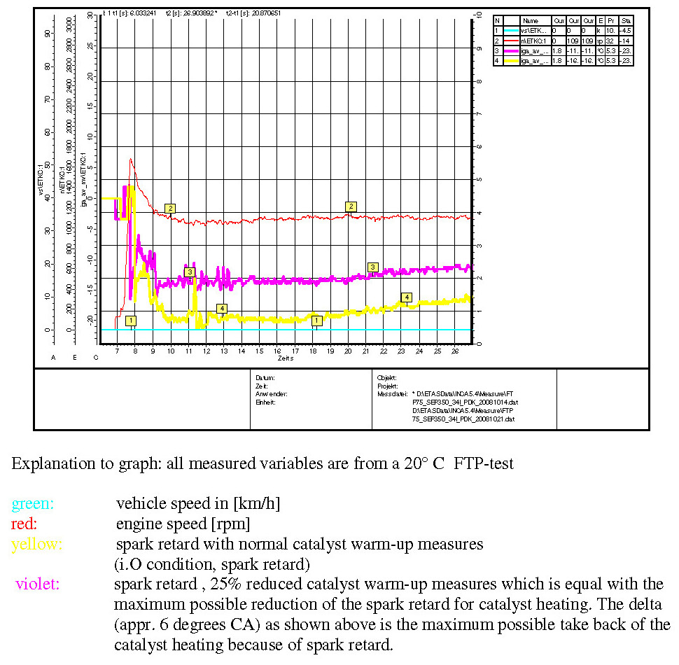 Emission influence of spark retard during FTP-test