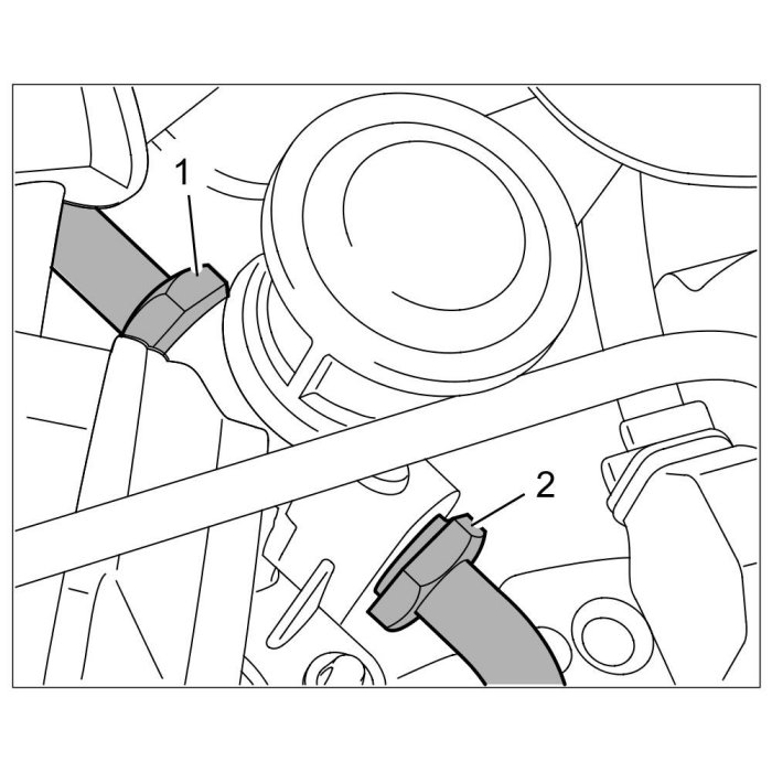 9. Fit coolant hoses at the oil/water heat exchanger.