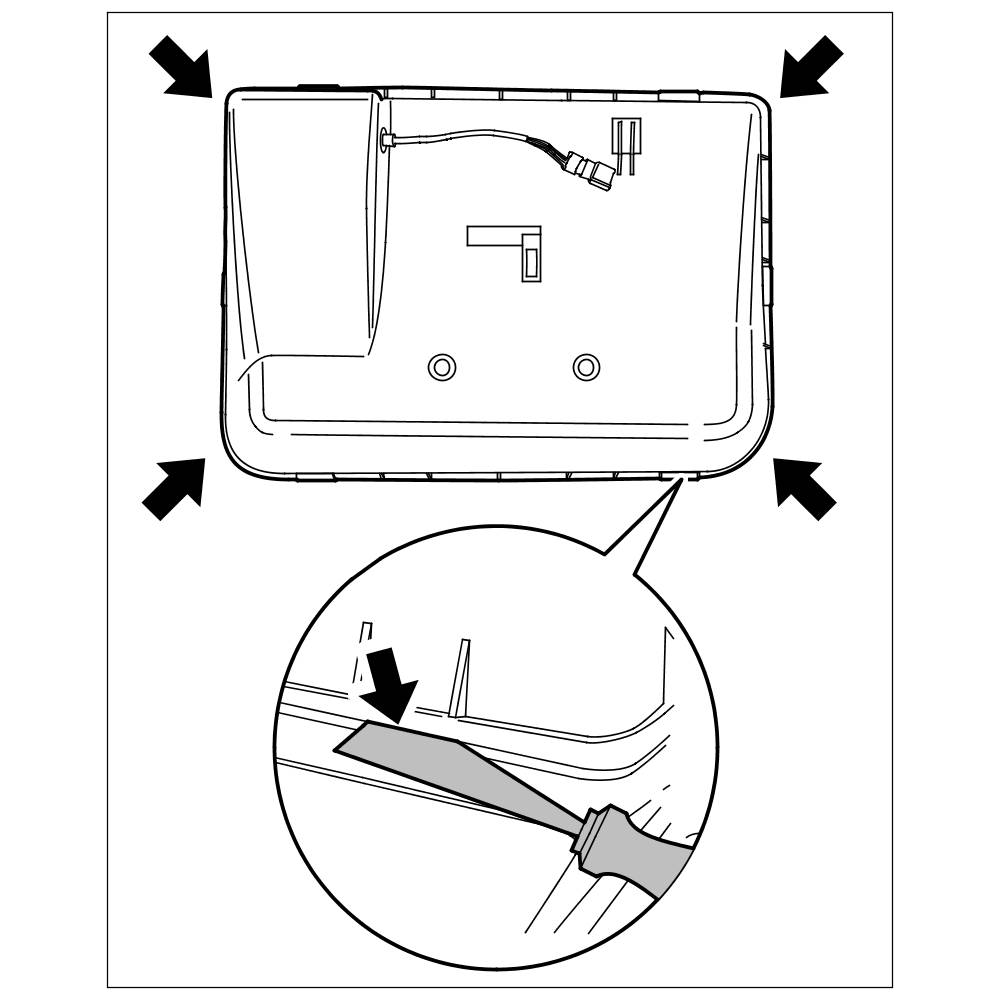 2. Carefully open the carbon canister using a rigid spatula or a wide screwdriver. -arrows-