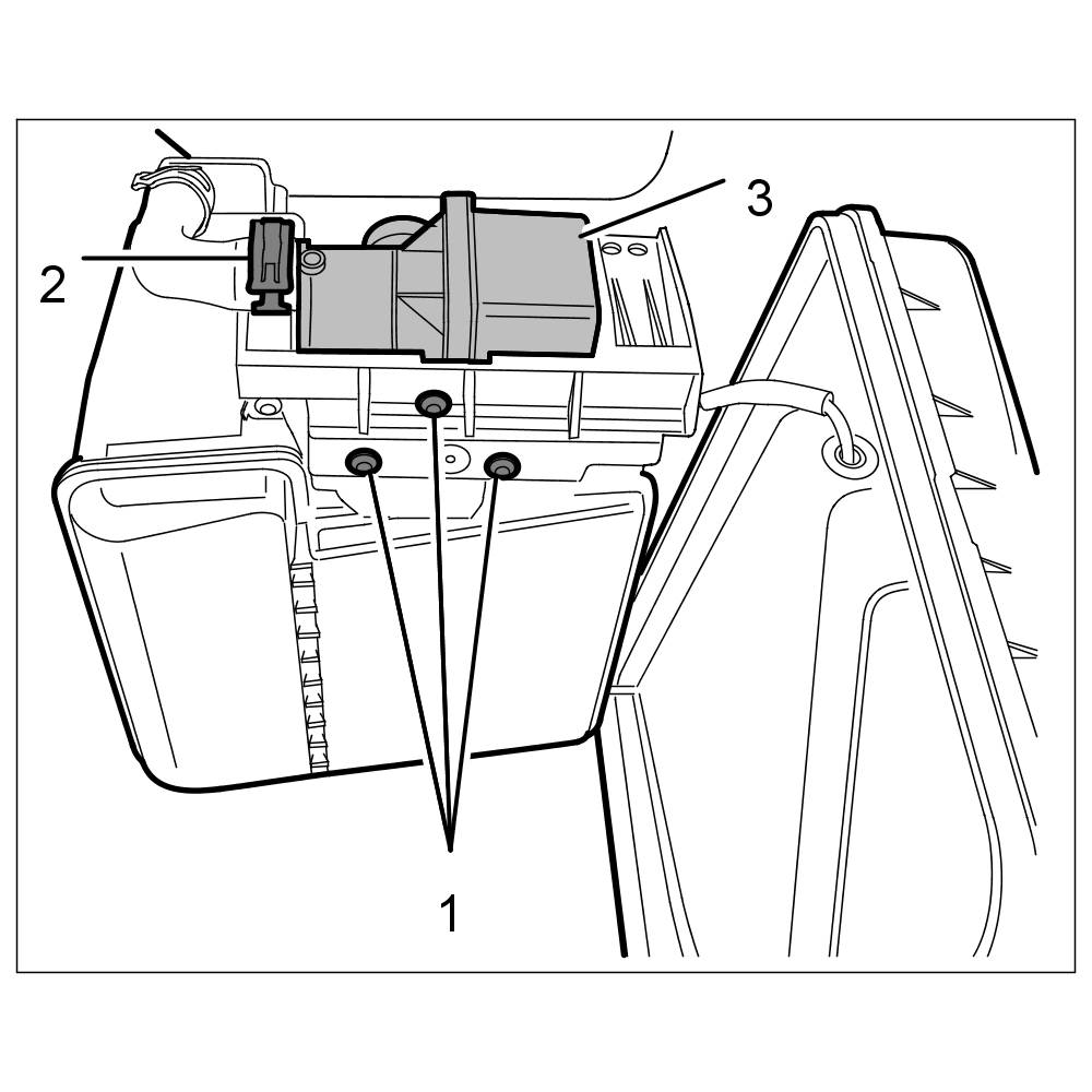5. Unscrew three internal Torx screws -1- used to secure the leakage diagnosis pump -3-.