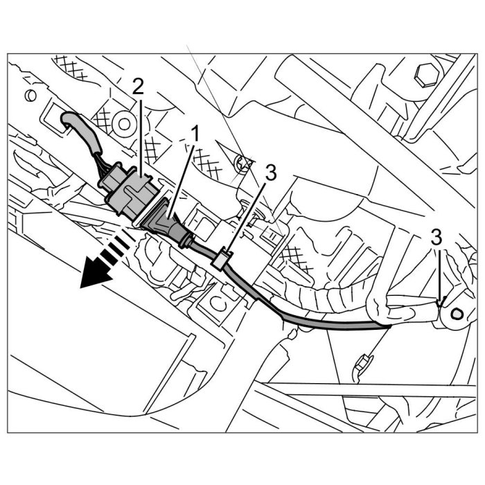 2.3. Unclip cable out of retaining clips -3- on plastic strip and oil-filter housing.
