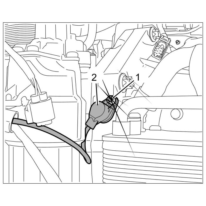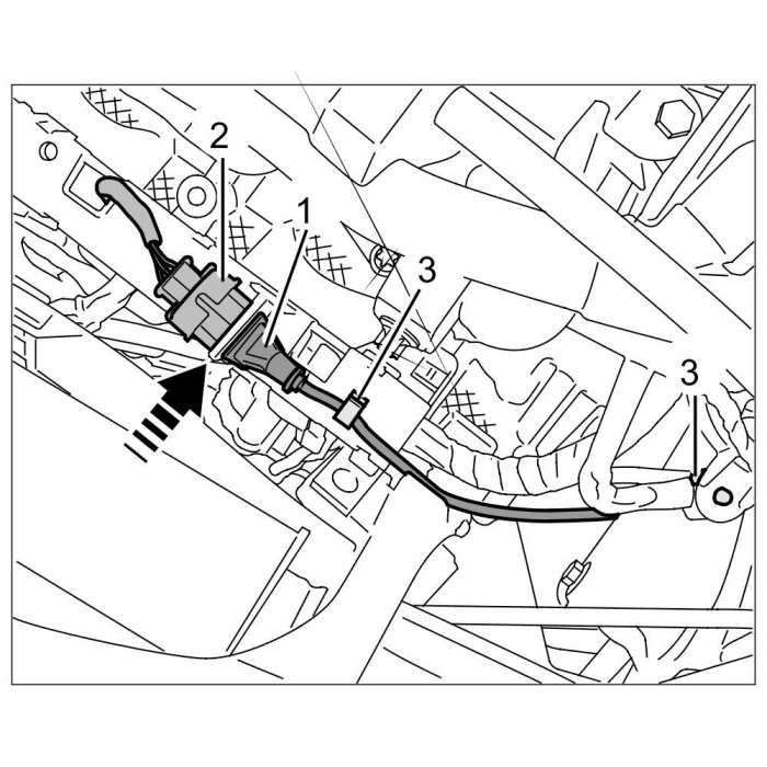 2.3. Clip cable into retaining clips -3- on plastic strip and on oil-filter housing.