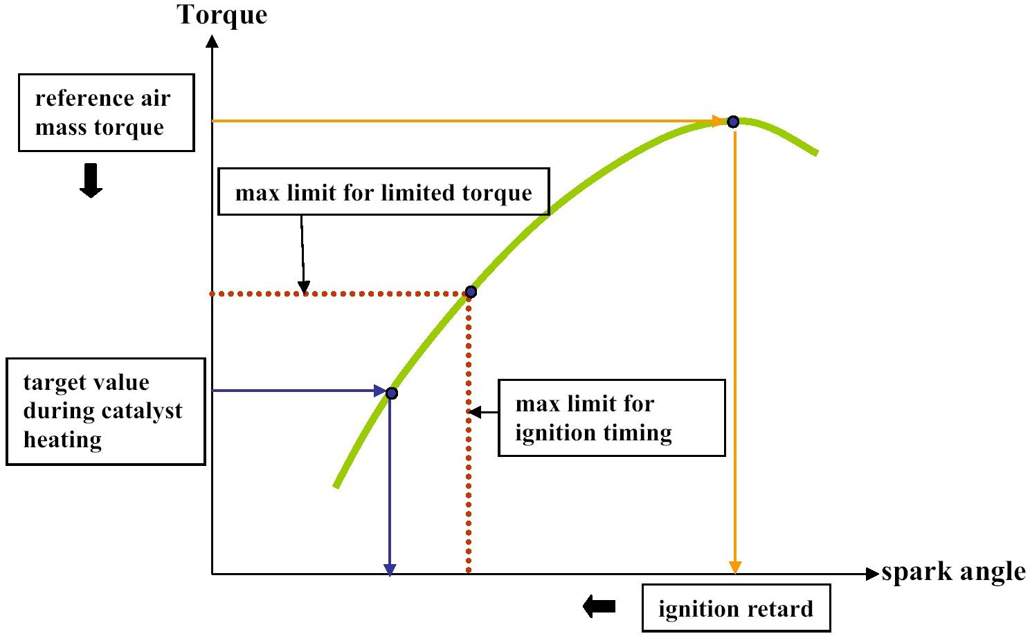 The spark retard is limited (fixed) during the catalyst heating phase.