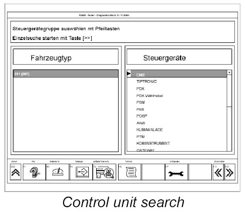 2. Start the diagnostic program, select the vehicle and highlight the DME option during control unit selection. Press F12>> to start the control unit search.