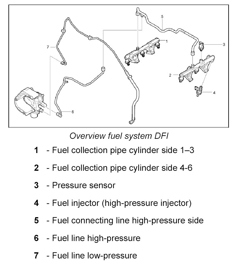 Overview of fuel system in engine compartment