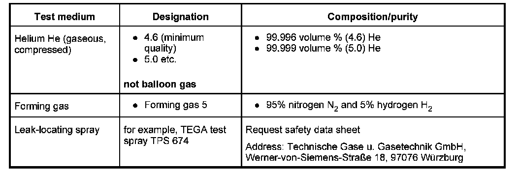 - The test gas test pressure must not exceed a maximum pressure of 10 bar.