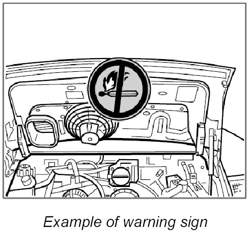 1. Attach warning sign in a clearly visible position on the vehicle or position in the immediate working area.