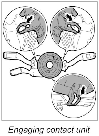 4. 1. Position airbag contact unit and press onto the steering column switch until the three tabs are felt to engage.