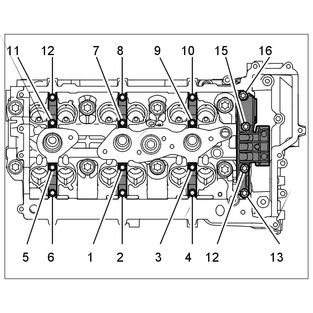 Tightening sequence for mounting camshafts 1-3