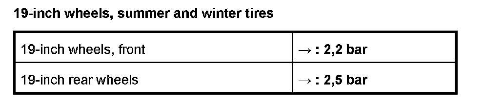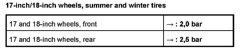 The chart of tires and wheels for summer and winter should be taken from Technical Information (TI) Group 4!