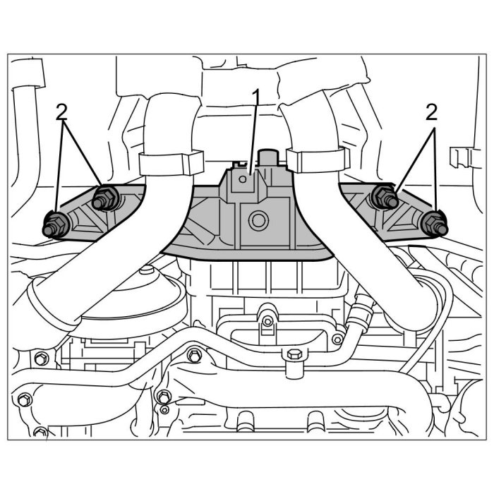 1.3. Screw off the four fastening nuts -2- on the engine mounting -1-.