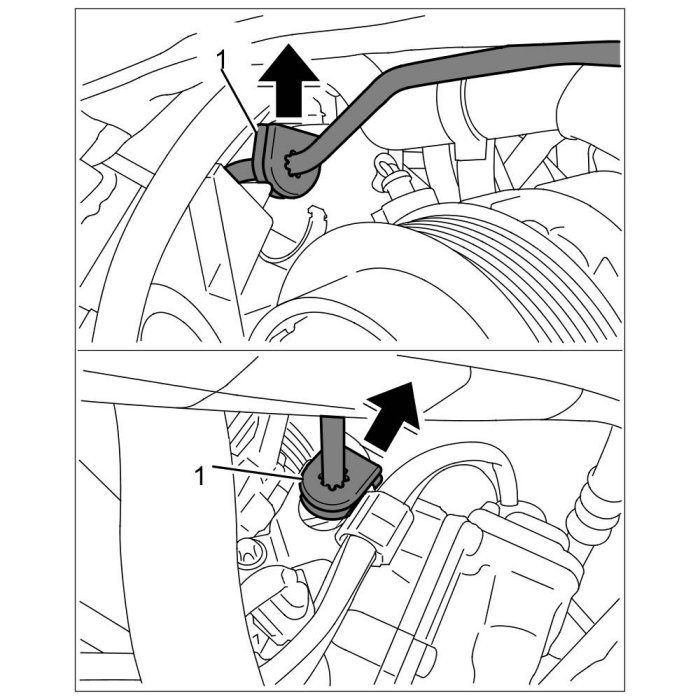 2.1. Pull the fuel line out of the brackets at the two rubber sleeves -1- ( -arrows- ).